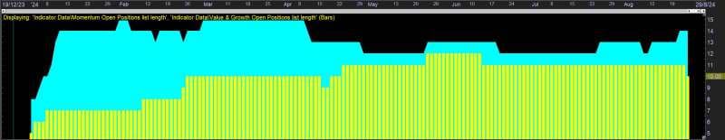 It also means they are not dependent on the Chart’s vertical price scale, which is really only useful for displaying the value of expressions that are dependent on the chart security’s price and which are in the price’s minor currency units. So if you wish to show, for example, the number of securities selected for a strategy’s trading list or some benchmark list, or some other value that has nothing to do with price, then use the Indicator overlays.